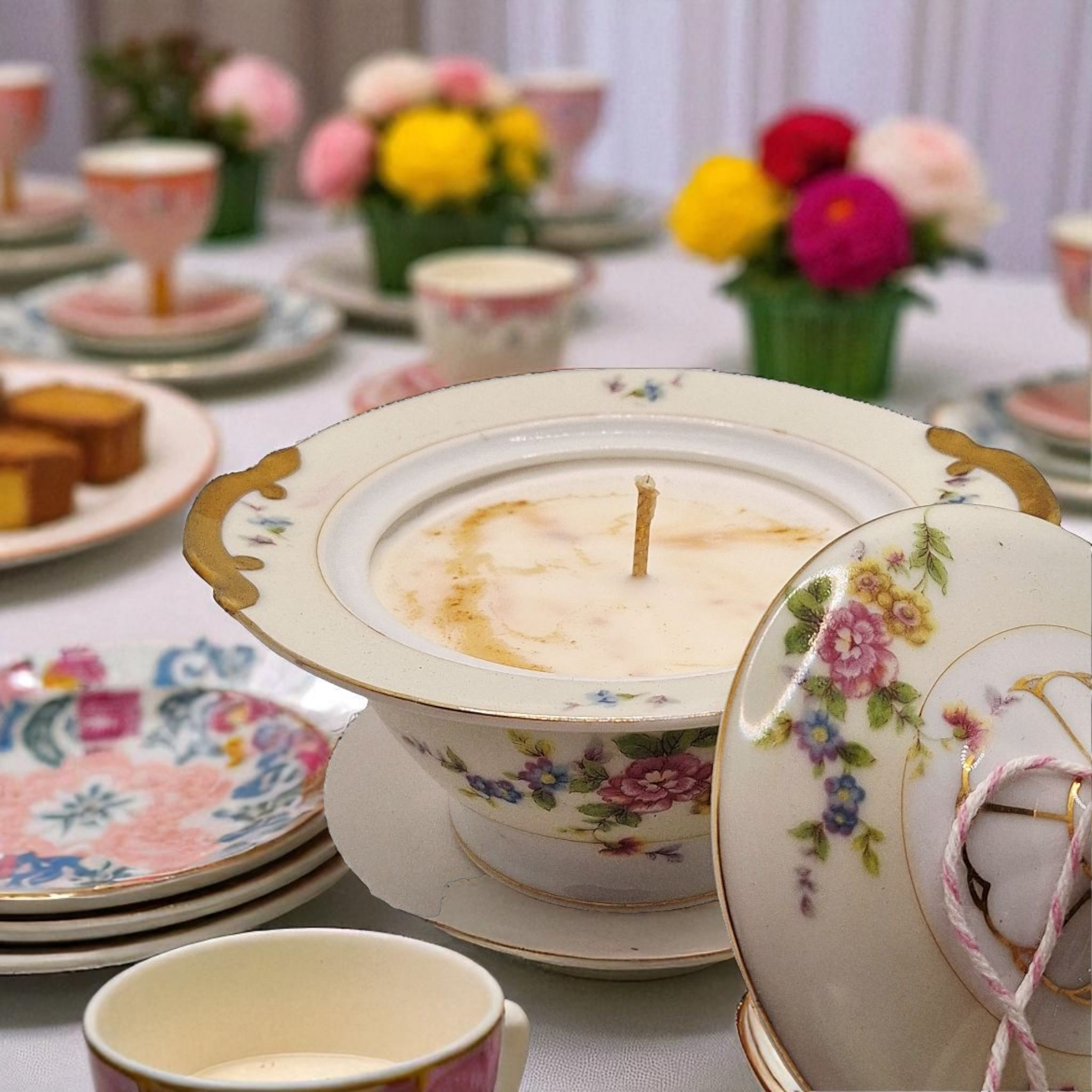 Crafted with care, our handmade soy wax candles offer a clean-burning, eco-friendly glow. Made from renewable soybeans, they provide a longer-lasting, more even burn, filling your space with captivating, subtle fragrances for a naturally inviting ambiance. They are a wonderful gift for every occasion and they also make excellent centerpieces for tea parties and events.