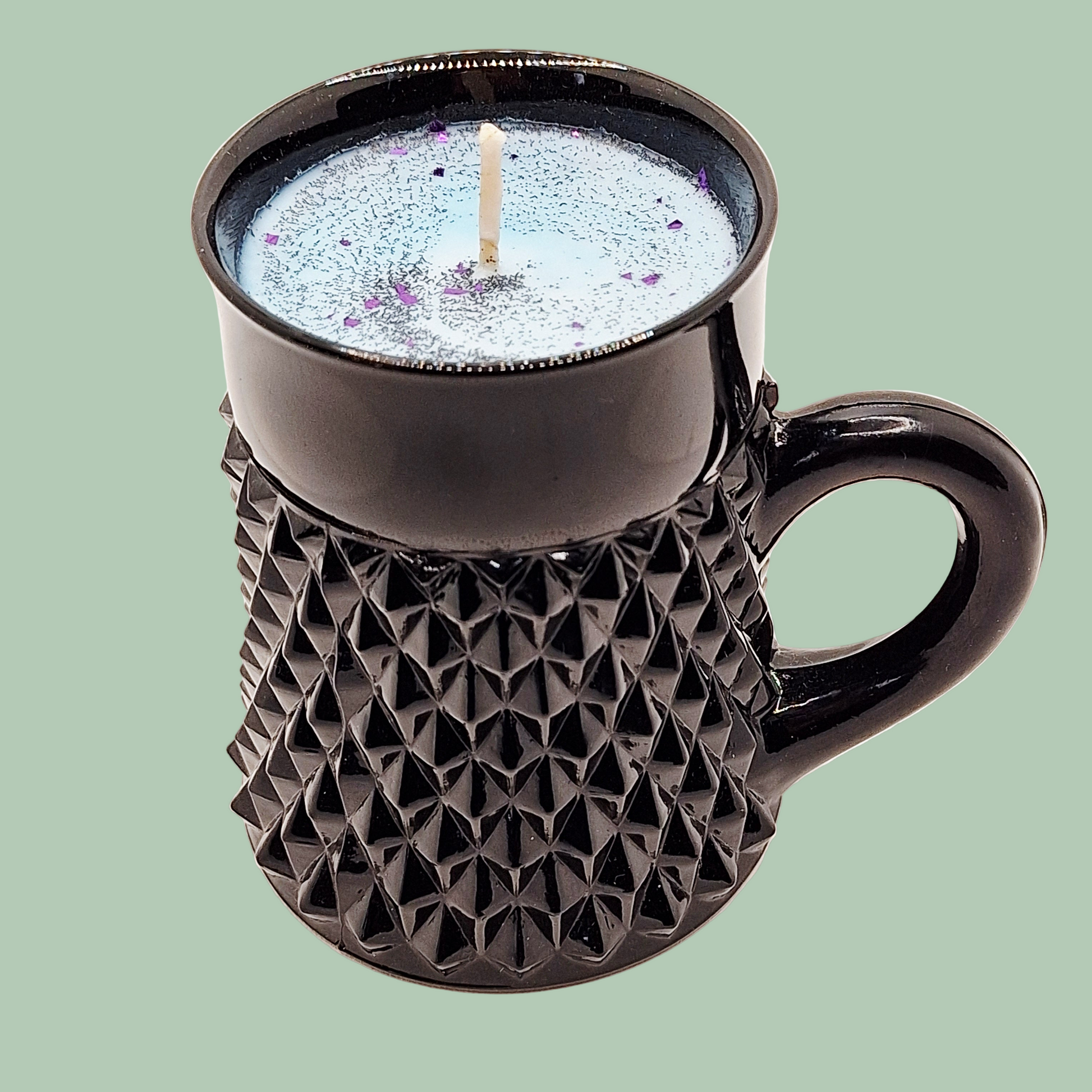 This beautiful candle was poured in a Vintage Mid-century Modern Indiana Glass Company Tiara Tankard mug.
