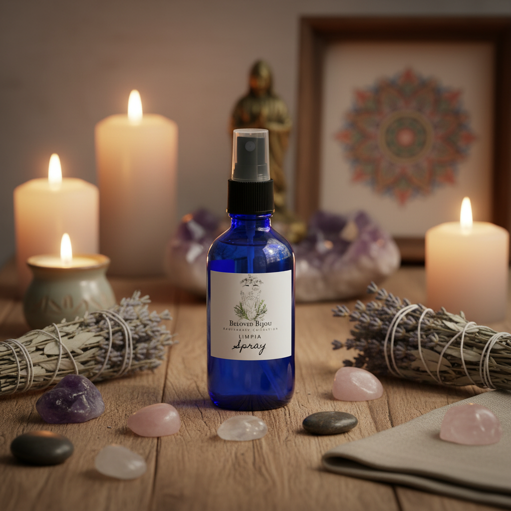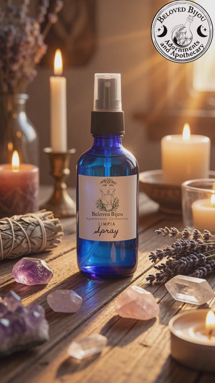 Experience the aromatic and tranquil energies of Colonias, New Mexico with our Limpia Liquid Cleansing Spray. Made with essential oils inspired by the area's native woods and plants, commonly used for smoke cleansing, turned into a liquid cleansing spray. Infused with a Colonias quartzite crystal, this versatile spray can be used as a perfume, room and linen spray, personal cleanser, or surface cleaner. Comes in a glass bottle.