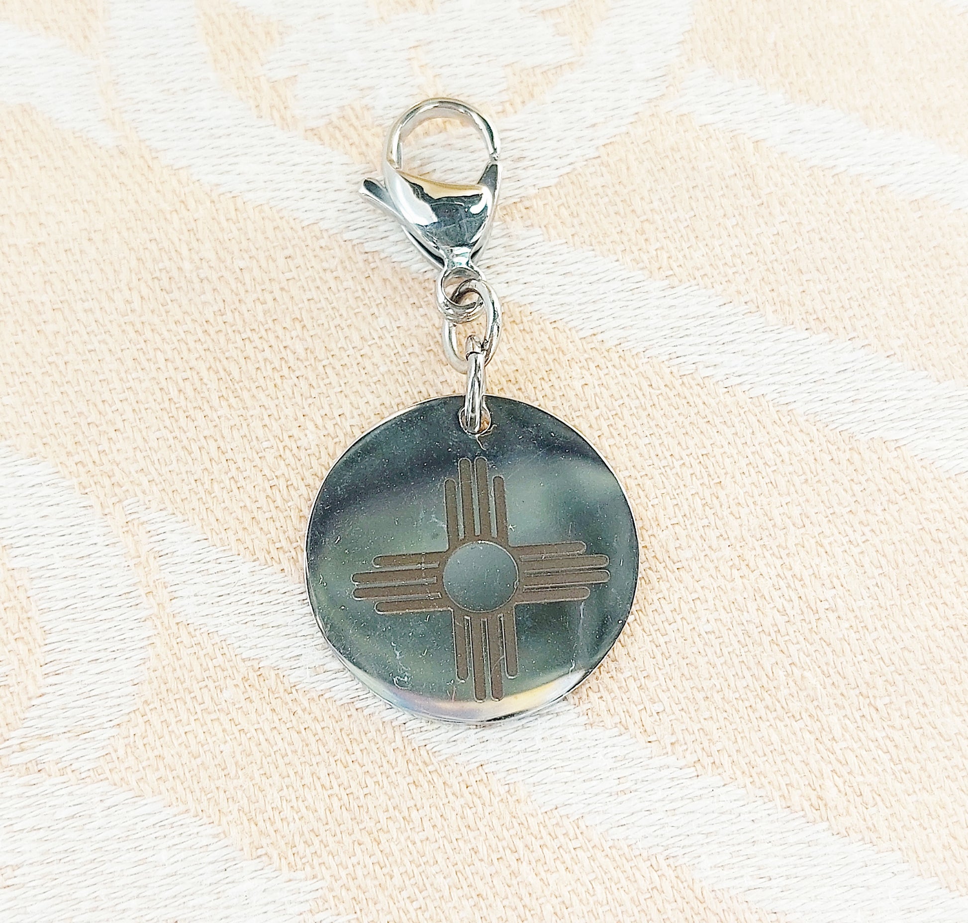 Add a touch of Southwestern charm to your outfit with our stainless steel Zia charms. Symbolizing New Mexico, the sun and the 4 directions, these versatile pieces can be worn on both necklaces and bracelets. Elevate your style with a touch of culture and elegance.