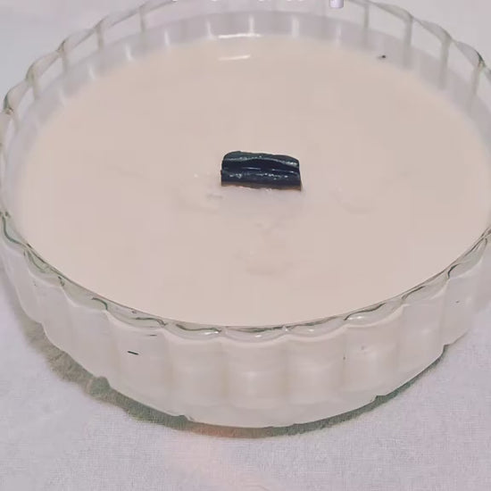 Vintage Milk Glass Molded Soy Wax Wood Wick Dish Candle