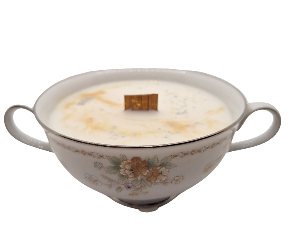 Bring a touch of nostalgia and unique scent to your home decor with these Vintage Teacup Candles. Made from upcycled and repurposed vintage teacups, each candle is hand-poured and features mica powder, glitter, and/or crystals. Perfect for candle lovers and vintage enthusiasts alike.